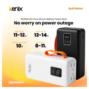 With the ultra-high 50,000mAh capacity, you’ll never have to worry about running out of power. A single charge can power an iPhone 14 nearly 10 times, keeping you connected for one or two weeks—perfect for business trips or family adventures with just one power bank.